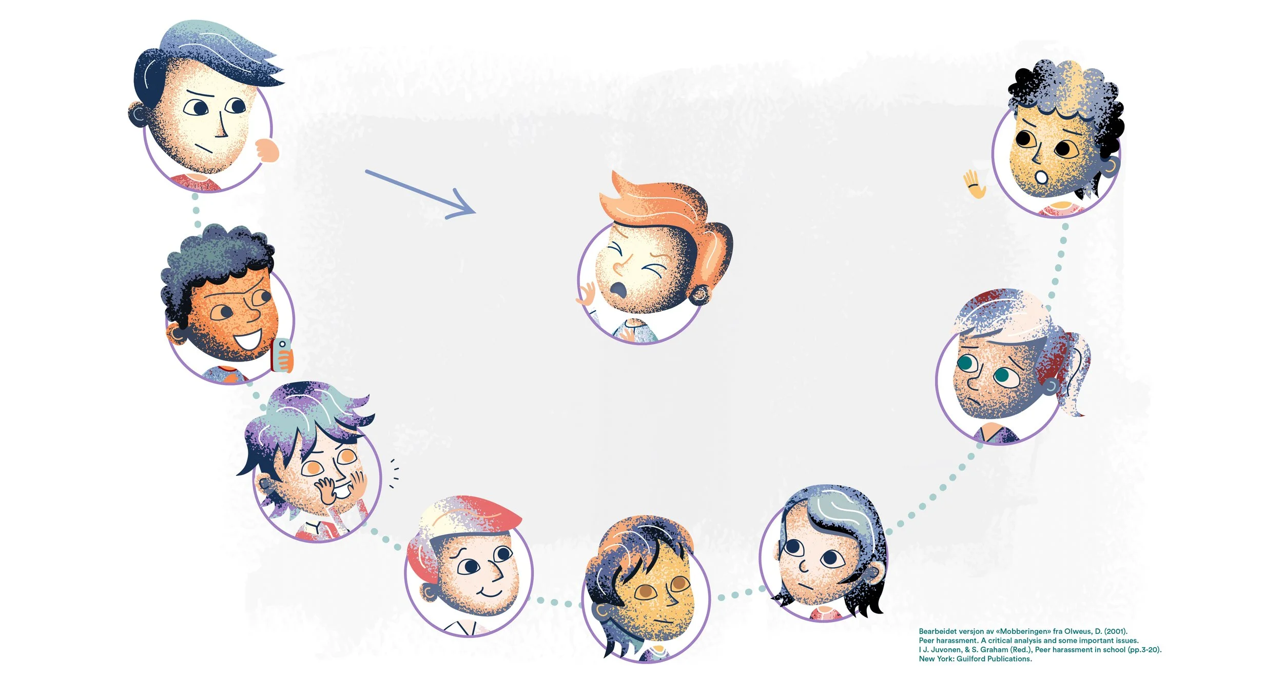 Mange av dere er svært godt kjent med bruk av mobbesirkelen i undervisning og med fagstoffet knyttet til en didaktisk bruk av illustrasjonene.